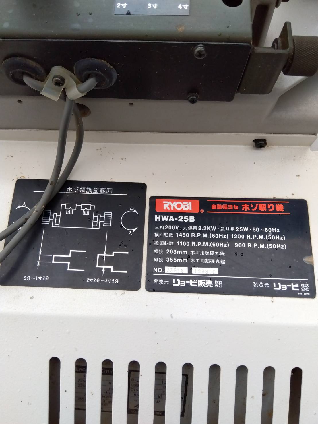 リョービ 自動幅寄せホゾ取り機 HWA-25B